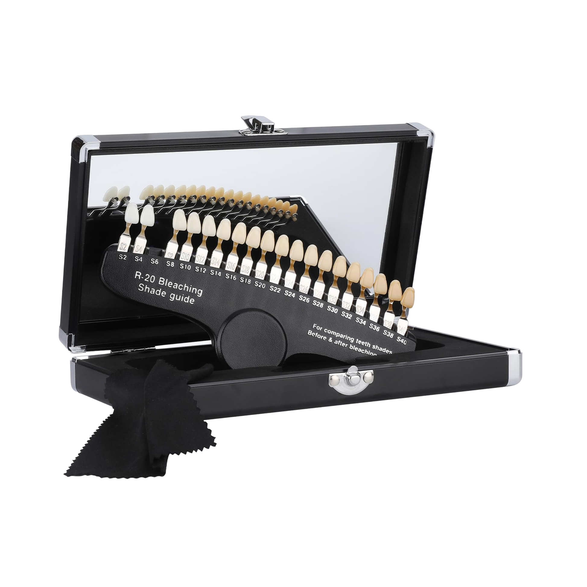 Cosmetic teeth brightening shade guide. A precise tool for assessing and documenting client progress throughout their whitening treatment.
